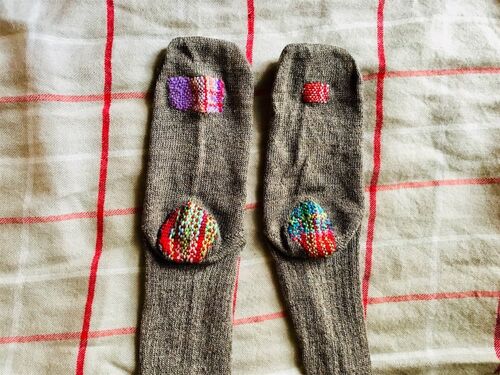 イギリスの伝統的なお繕い方法にダーニングというものがあります。 ダーニングマッシュルームと呼ばれるキノコ型の器具と毛糸を使ったお直しのテクニックなのです。昨年の終わり頃から、わたくしこのダーニングが楽しくてハマっております。 誰かに習ったわ…